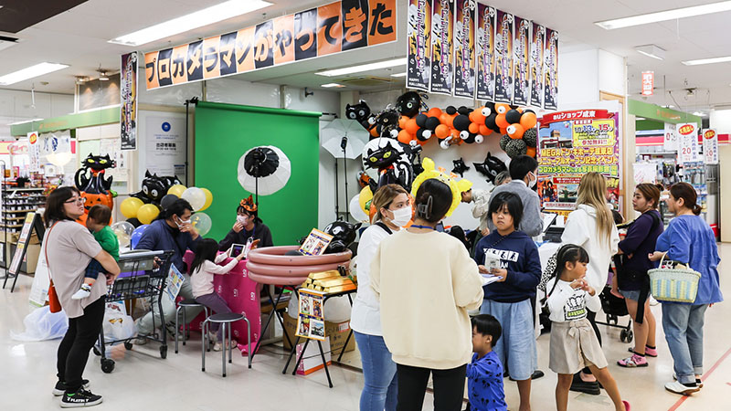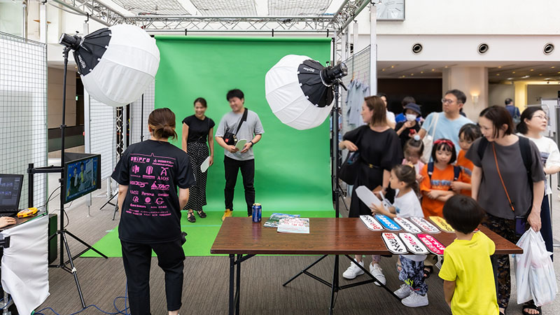 クロマキー技術を用いて毎回異なる背景デザインを設定できるため、季節やイベントごとに内容を変更しやすく、参加者に新鮮な体験を提供できます。また、プロのカメラマンが常駐しているので、クオリティの高い写真撮影が可能。イベントを盛り上げる演出としても非常に有効です。